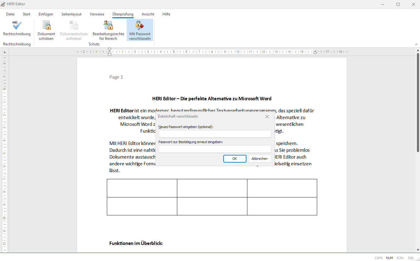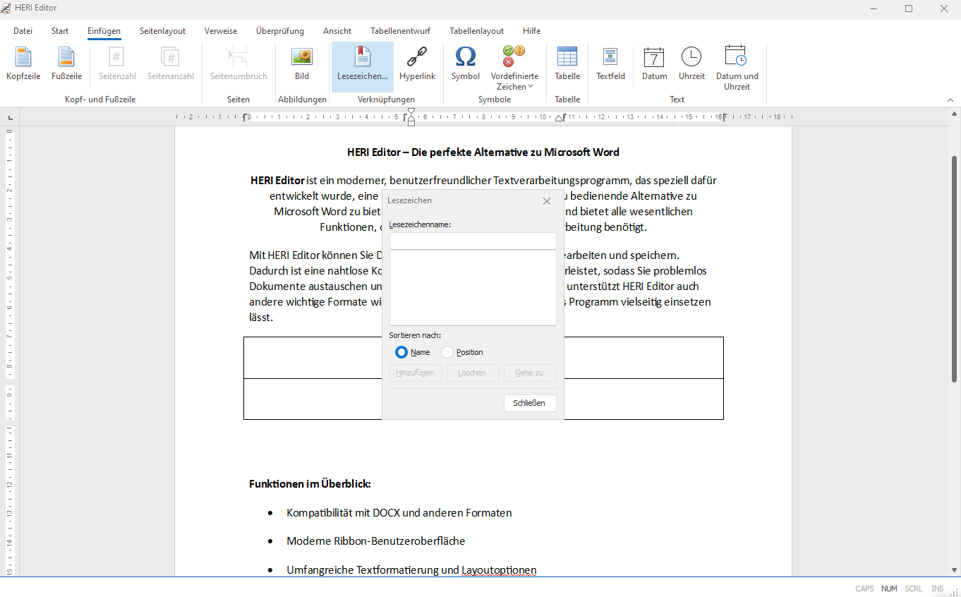 HERI Editor – Tabelle einfügen